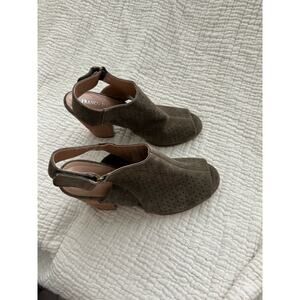 Franco Fortini Rhea Olive Green Suede Open Toe Bootie Size 9