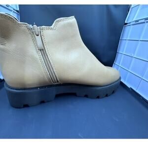 Elevate your shoe game with these stunning Franco Santo platform boots. Crafted from high-quality leather, these boots feature a chunky design with a zipper accent for a touch of edgy style. The tan color adds a warm and trendy touch, making them perfect for any occasion. These boots are designed with a women's US shoe size of 10 in mind, and they are sure to make a statement wherever you go. The upper material is made of leather, and the accents include a zipper. These boots are perfect for anyone looking for a stylish and comfortable platform boot.These Do have defects,inside of Right Boot color coming off and top of left boot has scuffs.No Box No Tags