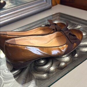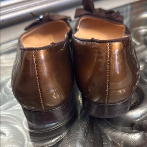 Franco Sarto 6 Bronze Patent Leather Brown Fabric Bow Women's Flats