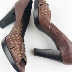 Franco Sarto 6 Brown Peep Toe Heels Pumps