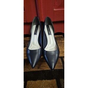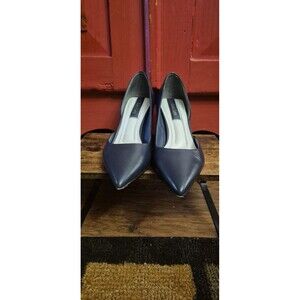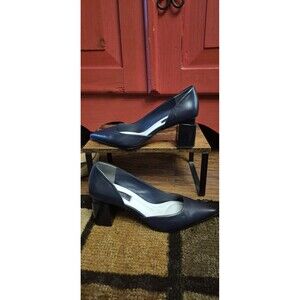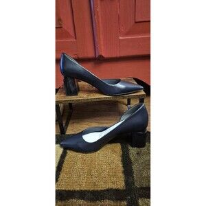 Franco Sarto 8.5 Lucy Pumps Navy W Open Side & Thick Black Heel Dressy Worn Once