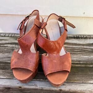 Franco Sarto A-Xenon cognac brown leather wedge sandals 8M