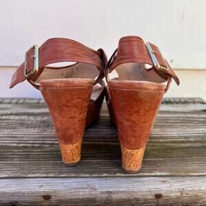 Franco Sarto A-Xenon cognac brown leather and cork wedge sandals