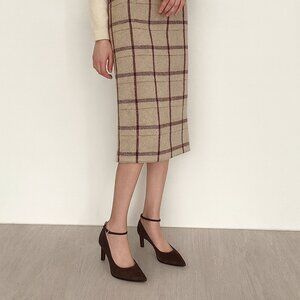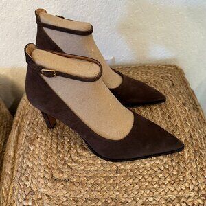 Step out in style with these gorgeous Franco Sarto Adeja pumps in rich brown suede! These sleek pointed-toe heels feature an elegant ankle strap with a gold-tone buckle for a sophisticated touch. The perfect blend of style and comfort, these shoes are designed with a sturdy mid-heel, making them ideal for work, special occasions, or everyday wear. 3.5" covered heel.