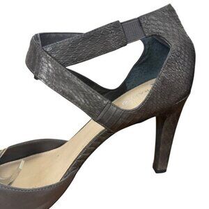 Franco Sarto Anazio Womens Dark Gray Ankle Strap High Heels Pointed Toe sz 8.5