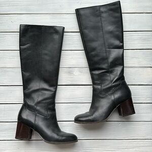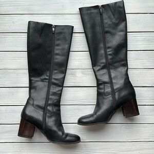 Franco Sarto Anberlin Black Leather Block Heel Boots