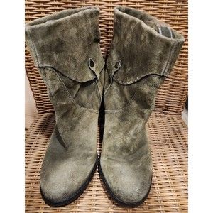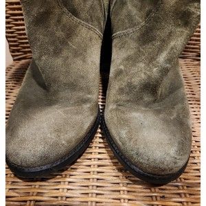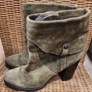 Franco Sarto Ankle Boots Suede Leather Sage Green Slip Booties Womens Size 11