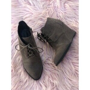 Franco Sarto Annabelle Womens Suede Leather Wedge Ankle Boots Gray 8.5 Lace Up