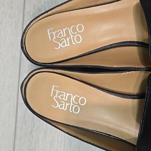 Step out in style with Franco Sarto's sleek black leather mules. Perfect for any occasion, these shoes offer both comfort and elegance.