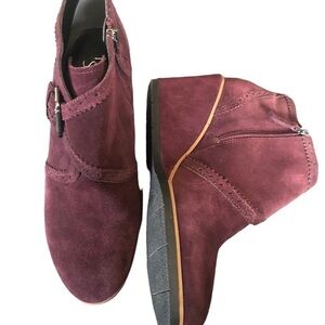 Franco Sarto Arielle Fashion Bootie Sz. 10M Wedge Heel Burgundy Suede Buckle