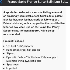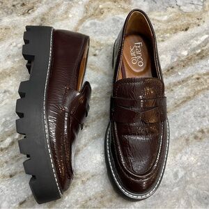 Franco Sarto Balin Lug Sole Loafers Burgundy Patent Leather Women’s 6
