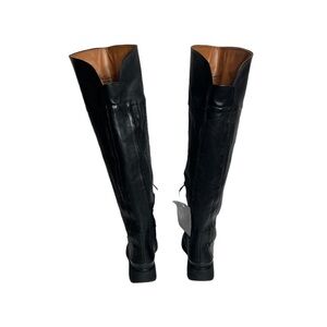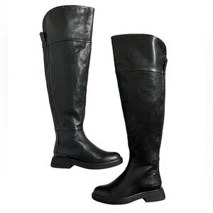 Update your cold weather footwear collection with the Franco Sarto Battina over-the-knee boot. This tall boot is crafted from luxe leather and outfitted with a low block heel.