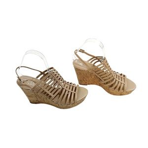 Franco Sarto Beige Sombre Leather Wedge Heel, Size 10M