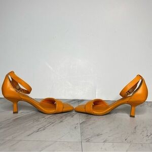 Franco Sarto Bery Orange Leather Ankle Strap Heeled Sandal 6 1/2 M