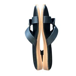 Franco Sarto Black Flat Leather Slides Sandals Women’s Size 8
