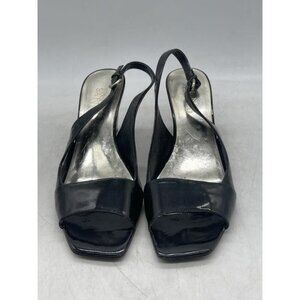 Franco Sarto Black Italian Patent Leather Sling Back Wedges sz 8.5 with 3" heels