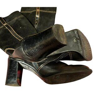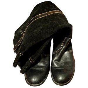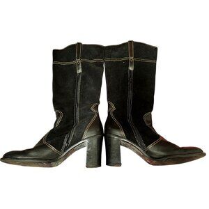 Franco Sarto Black Leather Suede Women's Mid-Calf Boots With Brown Stitching 9M