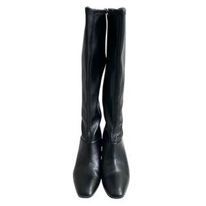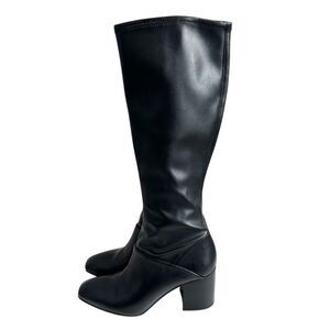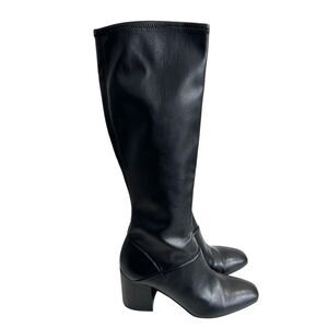 Franco Sarto Black Leather Tall Boots. Classic & tall. Warm. Comfortable. Heeled boots. Inner zipper. Slide on style. Rounded square toe. Leather upper. Rubber exterior sole✨