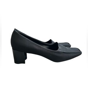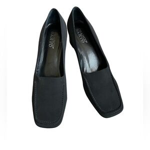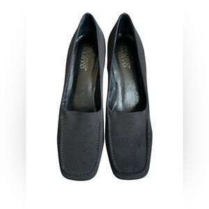 Franco Sarto Black Nylon Square Toe Chunky 2” Heels size 8.5