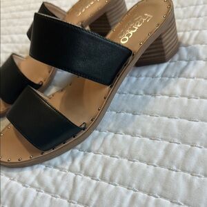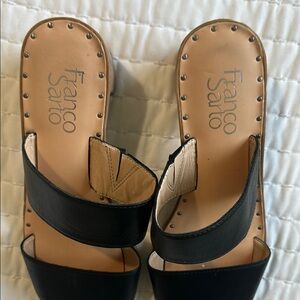 Step out in style with these Franco Sarto black sandals. Perfect for any occasion, these sandals offer both comfort and elegance.