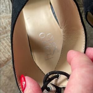 Franco Sarto Black Wrap Heels Party Sandals Women’s 9 Leather Block Heel EUC