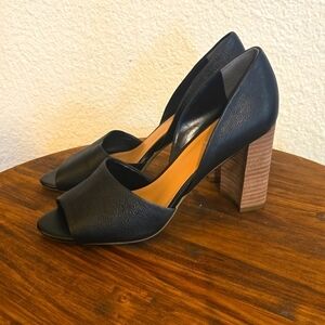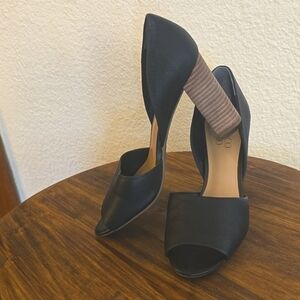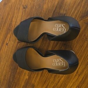 Franco Sarto Black pebbled leather HIGH block heel peep toes shoes Sz.7.5