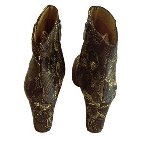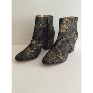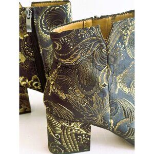 Franco Sarto Black/Gold Olympia Embossed Chunky Heel Ankle Boots,, size 9M.