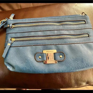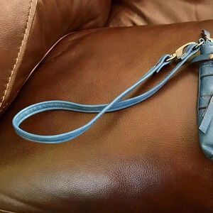 Blue leather wristlet in excellent condition. Two sections inside and card slots