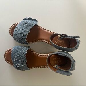 Franco Sarto Blue and Tan Espadrille Wedges with Jute Heel