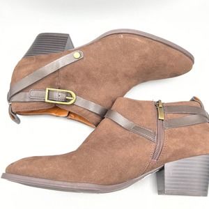 Franco Sarto Bootie Women's Giada Brown Vegan Suede Side Zip Chunky Heel