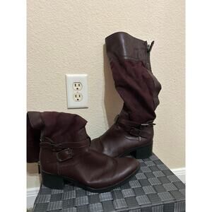 Franco Sarto Boots Womens Size 7.5 Cranberry Red Brown Suede Autumn Western Boho