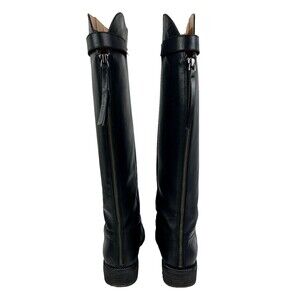 Franco Sarto Brindley Knee High Black Leather Riding Boots w/ Chain Detail 11