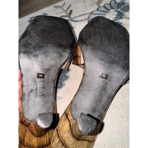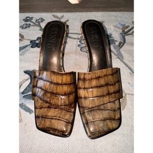 Franco Sarto Brown Croc Embossed Square Toe Kitten Heel Mules Slides 7M