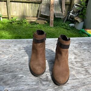[Franco Sarto] Brown Leather Side Zip Heeled Ankle Boots size 7.5