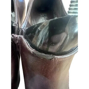 Franco Sarto Brown Leather Square Toe Side Zip Pumps Shoes Size 7.5