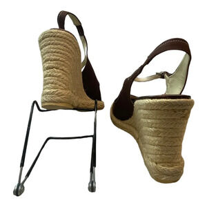 Franco Sarto Brown Straw Wedge Heel Women's Shoes