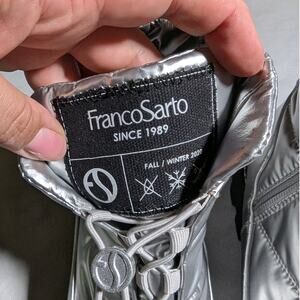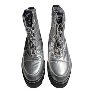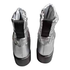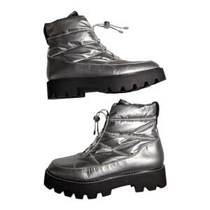 Franco Sarto Bucana Silver Metallic Quilted Puffer Lug Sole Toggle Boots Sz 8.5