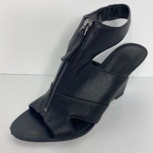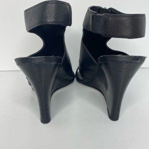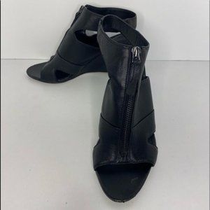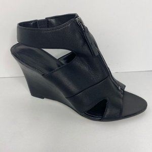 Cute leather caged wedges by Franco Sarto. Hill is made of stacked wood. Cute zipper detail. Some rubs and scrapes please see photos.