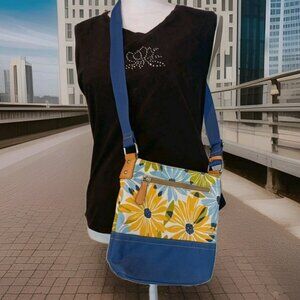Franco Sarto Canvas Sunflower Floral Print Satchel Bag โ Blue Handles โ Medium