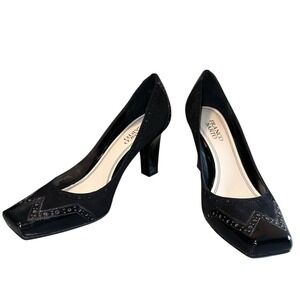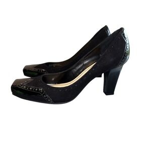 Franco Sarto Capital Women 9.5M Black Patent Leather Suede 3" Heel Square Toe