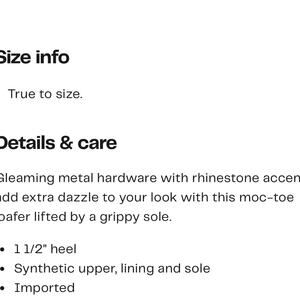 Raise the bar of your refined look with the Carol Bling loafer from Franco Sarto. This classic loafer is crafted with eco-friendly upper as well as eco lining and it features studded ornament detail that adds to the appeal.