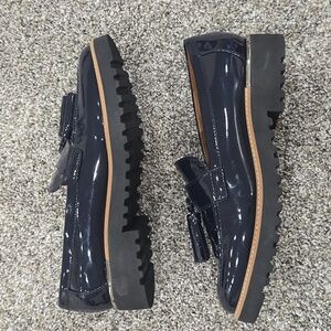 Franco Sarto Carolynn Tassel Loafer Ink Navy Faux Paten Sz 9W