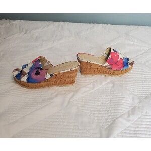 Franco Sarto Caty Slide Sandals Womens Size 8M Floral With Cork Wedge Heel
