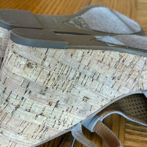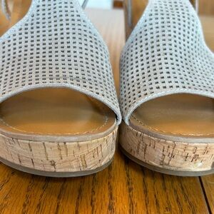 Franco Sarto Clinton2 Taupe Perforated Cork Wedge Platform 4” Sandals Size 10