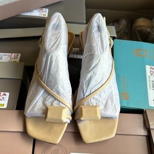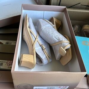 Simply effortless. This block heel makes styling your favorite pieces so easy. A beautifully designed sandal crafted to inspire. Made of leather upper, slip on fit, open toe, interwoven straps with toe loop detail and 1.5 inch heel for the perfect fit