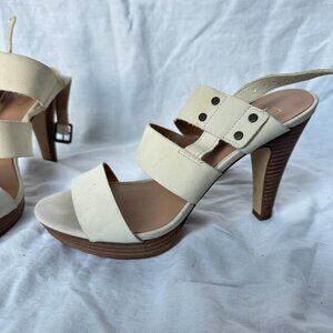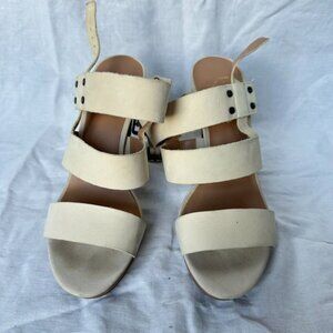 Franco Sarto Cream Strappy Stacked Heel Open Toe Sandal Size 8.5 Wedding Guest