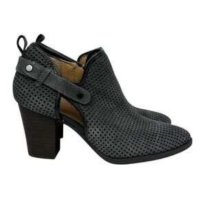 Franco Sarto Dale 2 Perforated Suede Heeled Ankle Boots Charcoal Gray Size 9