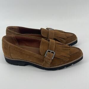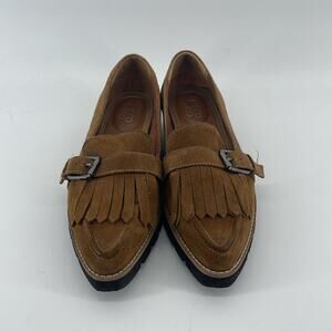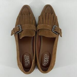 Franco Sarto Darius suede leather pointed toe slip on fringe lugged chunky sole loafer sz 8
