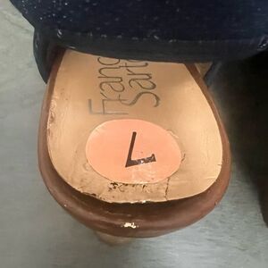 *Please note: Insoles are unglued on outer part of both shoes. Light peeling on the inside of both shoes and on left insole (it seems someone tried to glue it, ripped the insole a bit and fixed it). Shoe has a drop of clear glue (I assume as consequence of fixing the insole) on the denim back strap that caused a small hole. Strap still functional. Shoes have some scuffs & marks throughout.