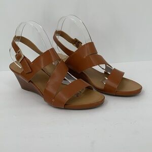 Franco Sarto Dodger wedge sandal shoe strappy brown caramel heel strap 11